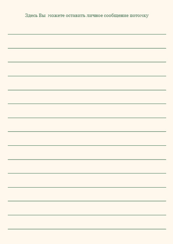| Здесь Вы можете оставить сообщение своему потомку. Он прочтет его, когда ему исполнится 18 лет. | ![]() |